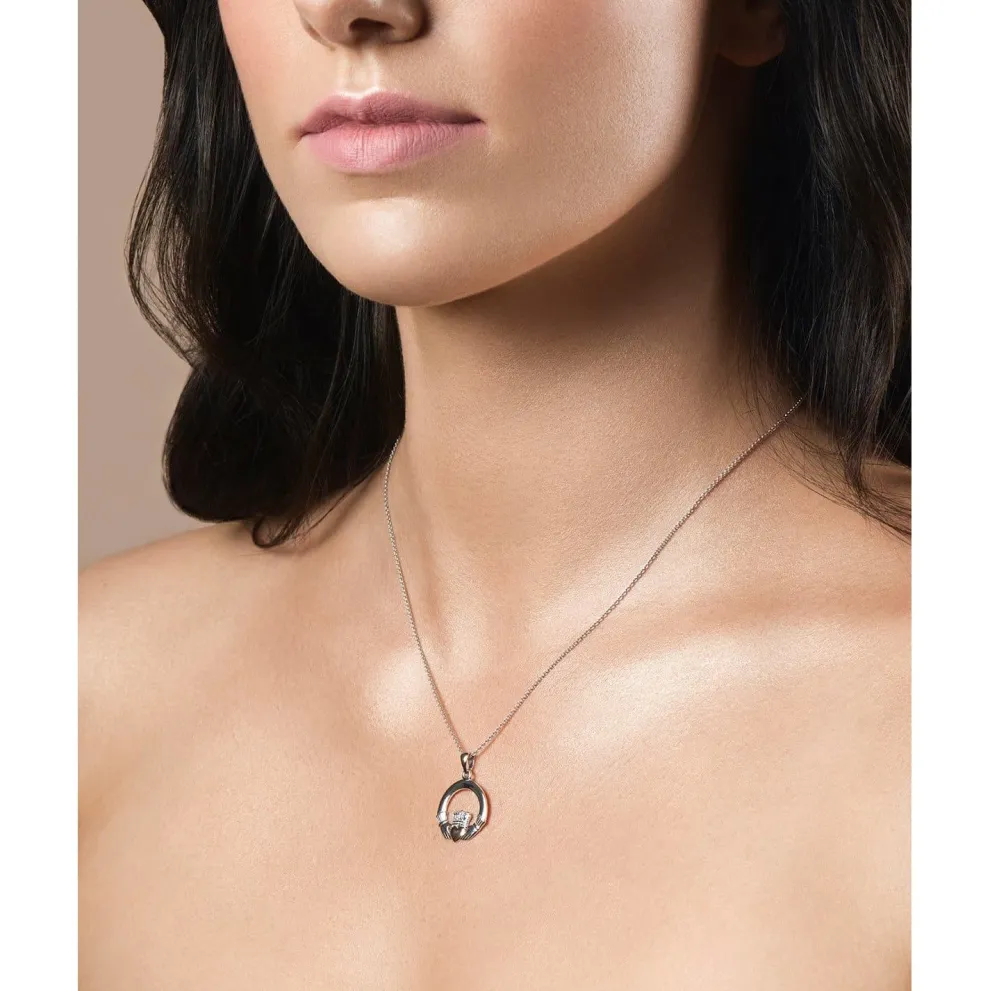 Our CladdaghPendantsare perfectfor wearing as an every day accessory or for keeping for special occasions! This beautiful sterling silver and rose gold pendant is designed around the Claddagh symbol,symbolisingLove, Loyalty and Friendship. Pair it withthe matching earringsfrom the Claddagh Collection. Comes presented in a gift box, perfect for gifting!
