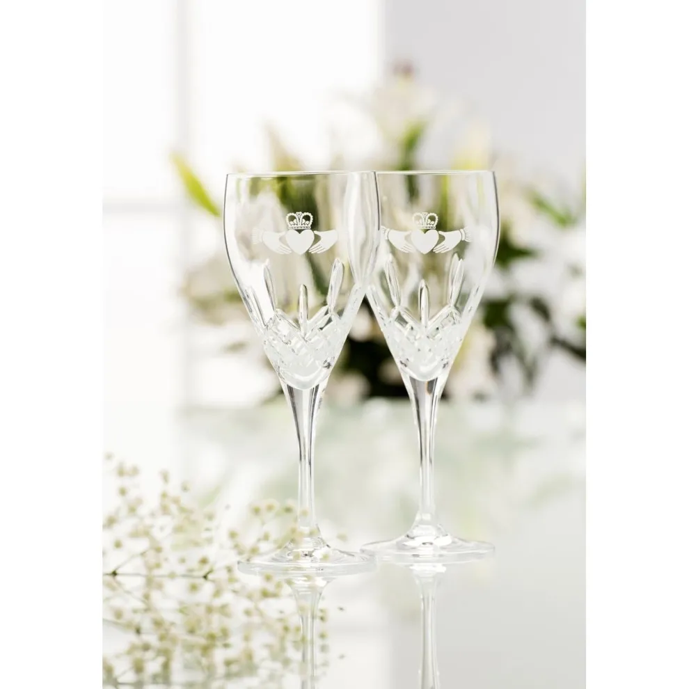 The Claddagh Red Wine is a heavy cut, durable andbeautiful glass. An elegant addition to your glassware collection and perfect for the red wine lover. It’s a popular glass for taking out to celebrate special occasions. Wines that work best for this type of glass shape are; medium to full bodies red wines like Merlot and Malbec.Due to the small opening, the flavors meet the tongue in a continuous flow as opposed to all at once, which softens the spiciness and rich flavors from the red wine.Ideal gift for the Red Wine Lover with the beautifully cut detail and elegant design that incorporates the Claddagh Symbolism.