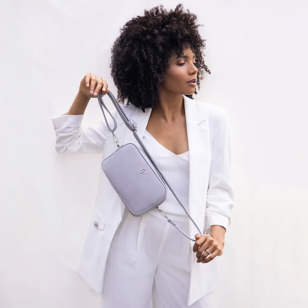 Our Galway Crystal grey cross body bag is casual but classy and perfect for carrying all of life’s little essentials. The long adjustable leather strap means this bag can be worn cross body or on the shoulder and the strap can also be removed completely to be used as a clutch. This stylish handbag will take you effortlessly from day to night!