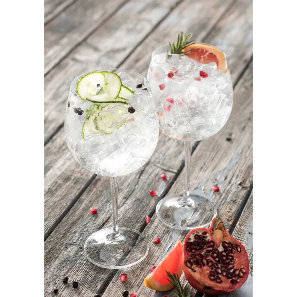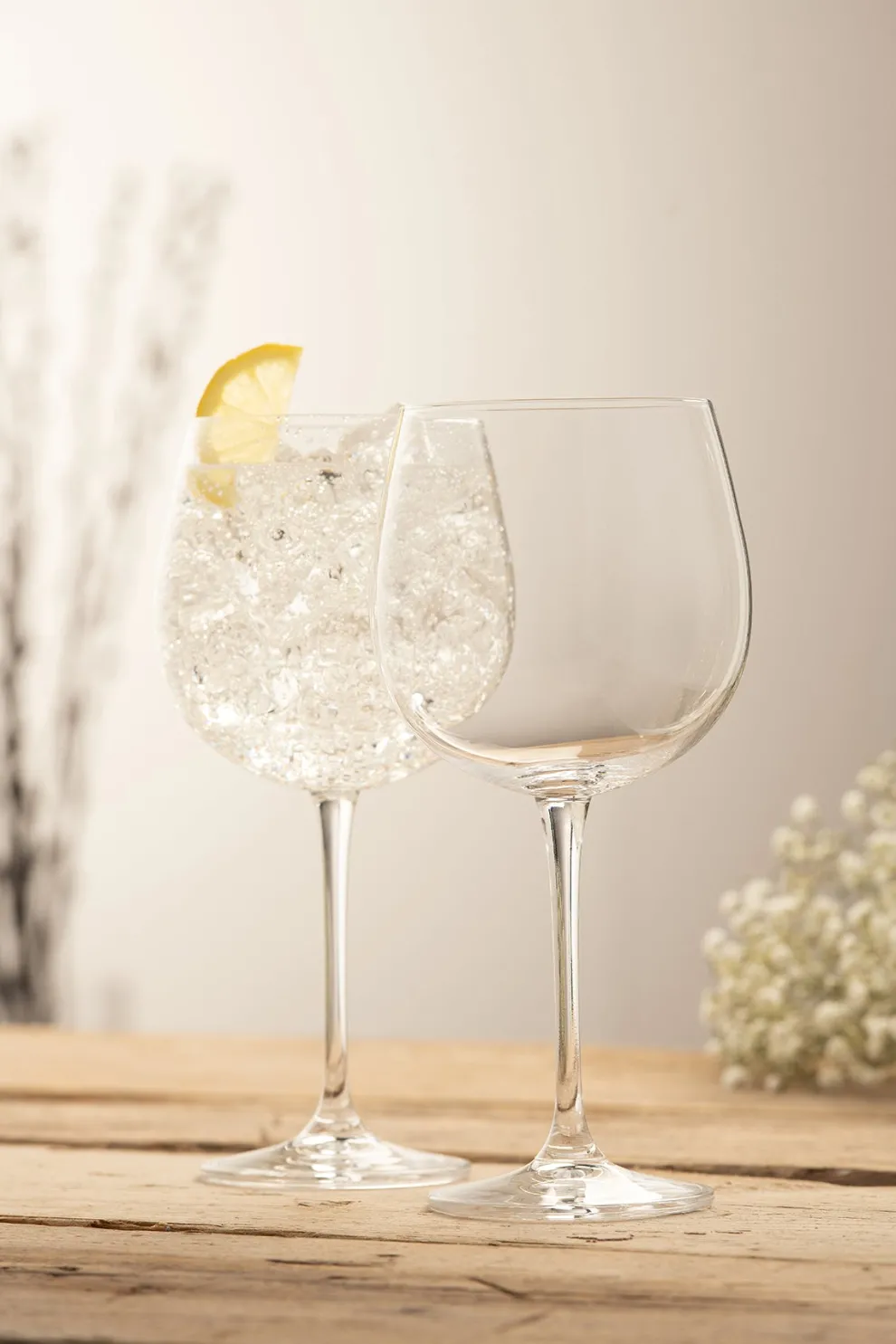 Balloon Gin glasses are a favourite of Gin lovers for their large rounded body. Our Elegance Gin glasses is everything you need in a perfect gin glass.The wide brim of the glass lifts the fragrance of your G&T up to your nose, allowing you to enjoy the full aroma of the drink as you sip! The spacious bowl of this stunning glass allows for plenty of ice to keep your dink refreshingly chilled, while the tall slim stem prevents your hands from warming or melting the ice when holding. The added bonus of a large balloon glass alows for plenty of garnish to help flavour your G & T and most importantly make it look pretty! If you love gin this is the glass for you.