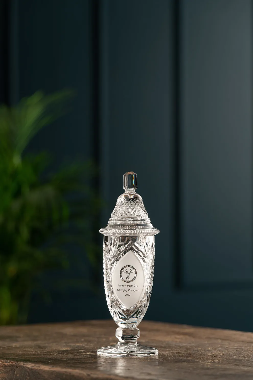 10″ Footed Sports Trophy. This is a heavy cut crystal trophy that is perfectfor Corporate and Sporting Presentations. Add a personal message/name & image of your choice!