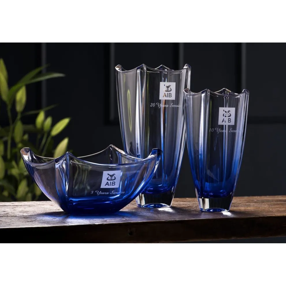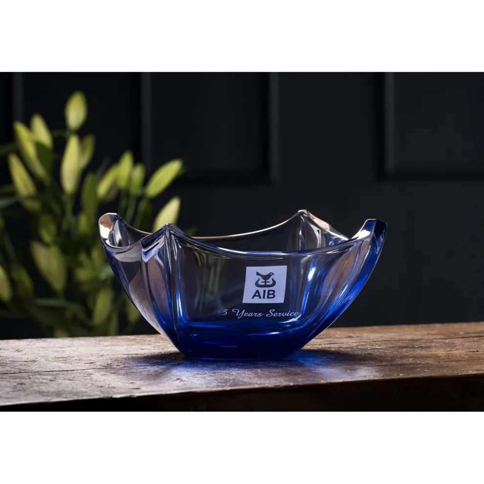 This beautifully crafted Galway Crystal Dune 10″ Bowlwith a sapphire colour base is a beautiful addition to your home. The elegant shape of the bowl along with theDune design with it’s characteristic sharp edges curving upwards,adds a stylish and modern finish. This bowl is ideal for everyday use but also makes a perfectgift as it quite a unique piece.For Engraving just add a personal message/logo of your choice!