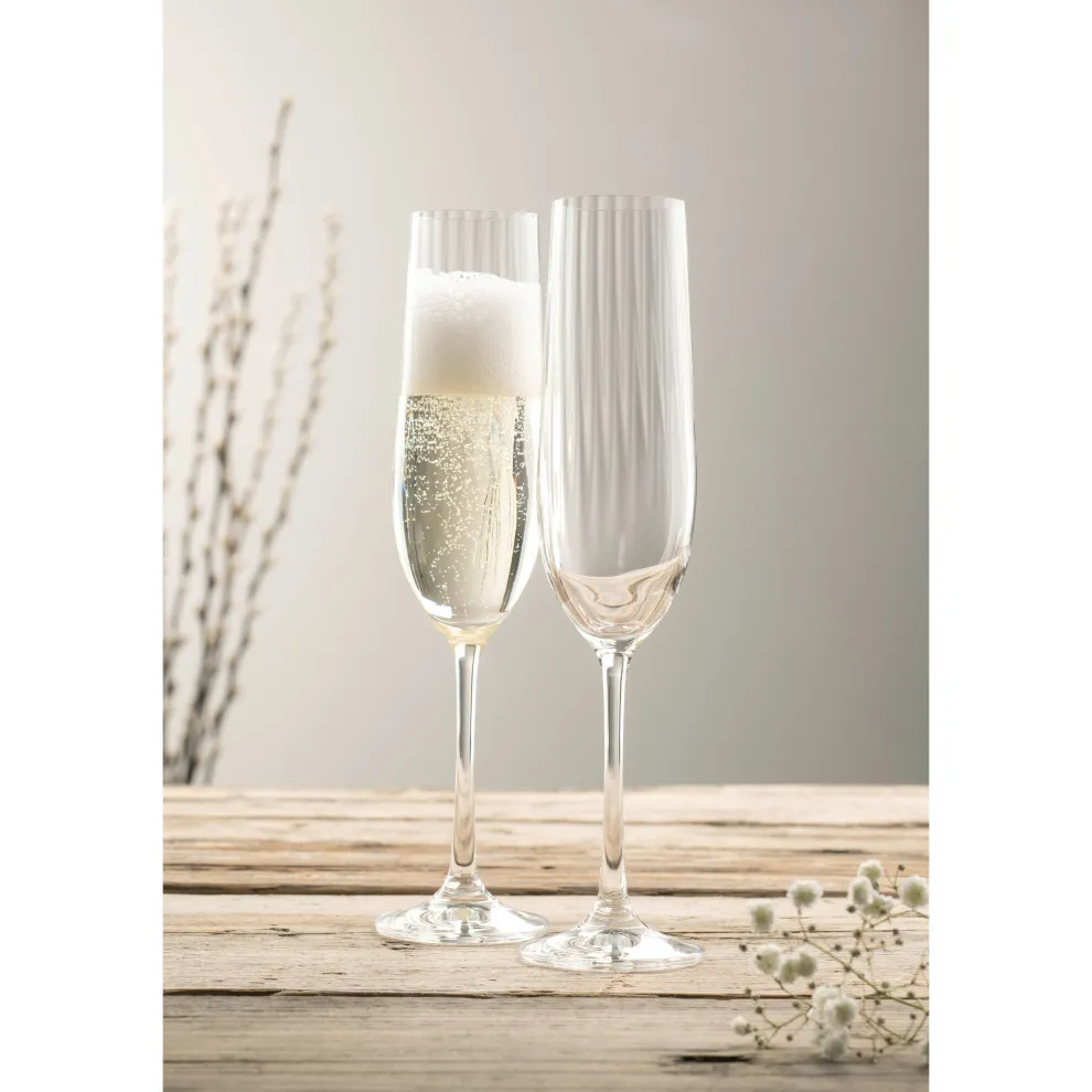 Ifyou love your “fizz” then our champagne flute pair are you. The champagne flute representsluxury and class. Aesthetically, it has a tall, thin body with medium to long stem that makes you immediately think of sophistication and indulgent celebrations. A flute shape glass really gives more “oomph” to your champagne/prosecco as more bubbles are generated and float to the surface. The luxurious glass shape along with the Erne pattern displaying light lines along the body adds a stylish and modern finish. Champagne/prosecco lovers this glass is for you.