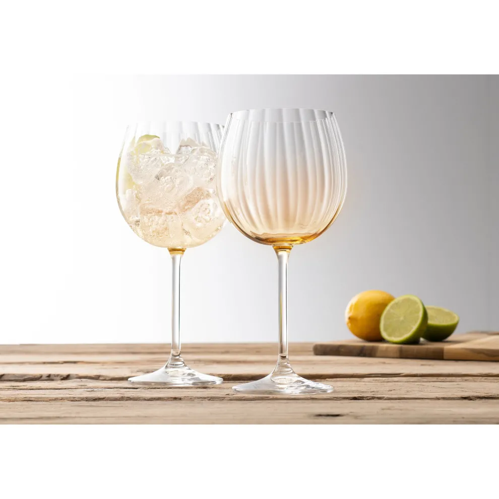 Amber colour Gin and Tonic glasses in the Erne suite. Beautiful large balloon gin glasses with elegant lines design in an Amber colour. The glass has been designed to add a splash of colour and light design to a stunning gin glass. Ideal for everyday use or as a gift. Another addition to our beautiful Amber glassware suite.