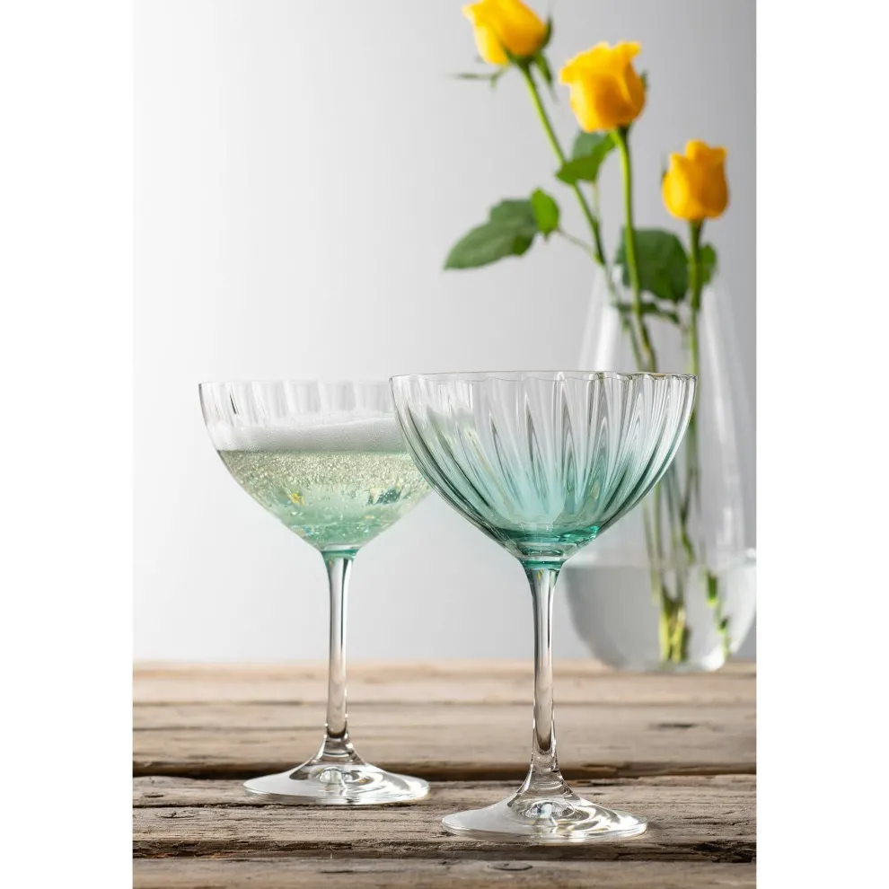 The saucer champagne glass is one of the oldest champagne glasses there is. We are excited to bring you a modern twist on an old classic. This glass stands the test of time and is truly a glass that never dates and is always in style. The ultimate in sophistication and luxury. The sophisticated glass shape along with the Erne pattern displays light lines along the Aqua body adding a stylish and modern finish. Champagne/prosecco and cocktail lovers this is the glass for you perfect for any and every occasion.
