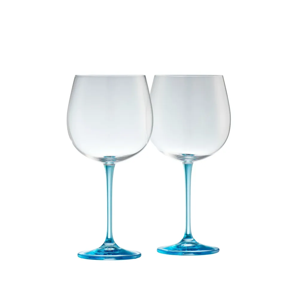 Balloon Gin glasses are a favourite of Gin lovers for their large rounded body. Our Blue Gin glasses are everything you need in a perfect gin glass.The wide brim of the glass lifts the fragrance of your G&T up to your nose, allowing you to enjoy the full aroma of the drink as you sip! The spacious bowl of this stunning glass allows for plenty of ice to keep your dink refreshingly chilled, the tall blue slim stem while adding a pop of colour prevents your hands from warming or melting the ice when holding. The added bonus of this large balloon glass is it allows for plenty of garnish to help flavour your G & T and most importantly make it look pretty! If you love gin this is the glass for you.