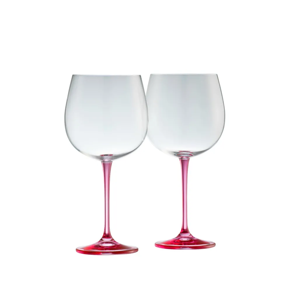 Balloon Gin glasses are a favourite of Gin lovers for their large rounded body. Our Pink Gin glasses are everything you need in a perfect gin glass.The wide brim of the glass lifts the fragrance of your G&T up to your nose, allowing you to enjoy the full aroma of the drink as you sip! The spacious bowl of this stunning glass allows for plenty of ice to keep your dink refreshingly chilled, the tall pink slim stems while adding a pop of colour prevents your hands from warming or melting the ice when holding. The added bonus of this large balloon glass is it allows for plenty of garnish to help flavour your G & T and most importantly make it look pretty! If you love gin this is the glass for you