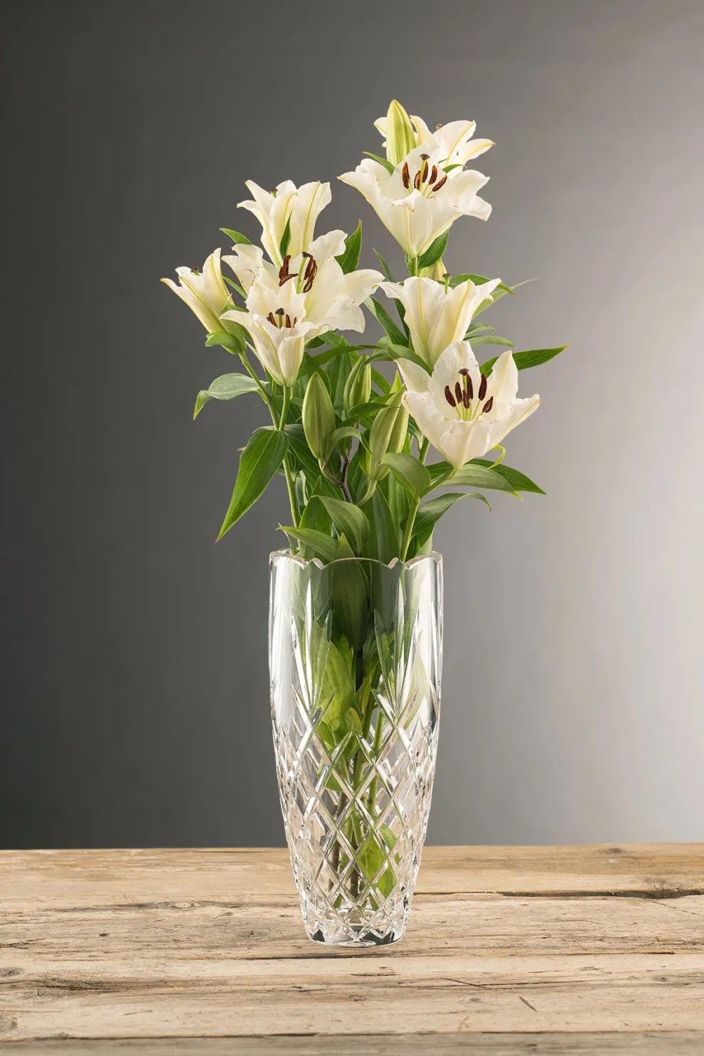 A tall cylinder shaped vase are ideal for long stemmed flowers such as your roses, lilies and sunflowers. Our Renmore 12″ is simply stunning with its’s heavy cut pattern which makes this a stand out piece. A larger vase provides great structure and keeps everything looking sleek and controlled. If you are looking for a table show stopper our Renmore vase is for you. Display along side our Renmore Glassware and you are onto a winning table display.