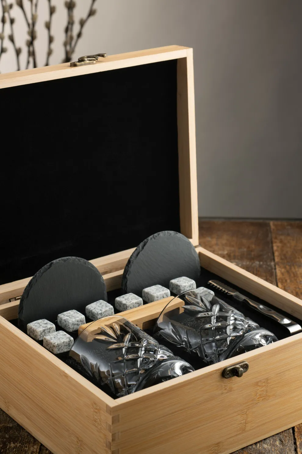 Our Renmore Bamboo wooden boxed whiskey gift set is the ultimate gift set for any whiskey enthusiast. All whiskey lovers will feel like they are the classiest whiskey drinker around with our stunning set. They will have everything they could ever need to enhance and experience the flavour of their whiskey. Our whiskey set is an ideal gift for any occasion.