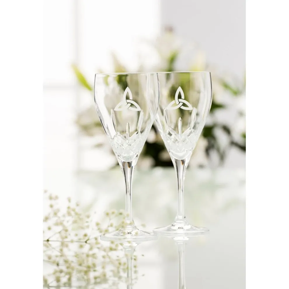 TheTrinity Knot Red Wine is a heavy cut, durable andbeautiful glass. An elegant addition to your glassware collection and perfect for the red wine lover. It’s a popular glass for taking out to celebrate special occasions. Wines that work best for this type of glass shape are; medium to full bodies red wines like Merlot and Malbec.Due to the small opening, the flavors meet the tongue in a continuous flow as opposed to all at once, which softens the spiciness and rich flavors from the red wine.Enjoy your favourite red wine from the Trinity KnotRed Wine pairwith the beautifully cut detail and elegant design that incorporates the Trinity Knot Symbolism.