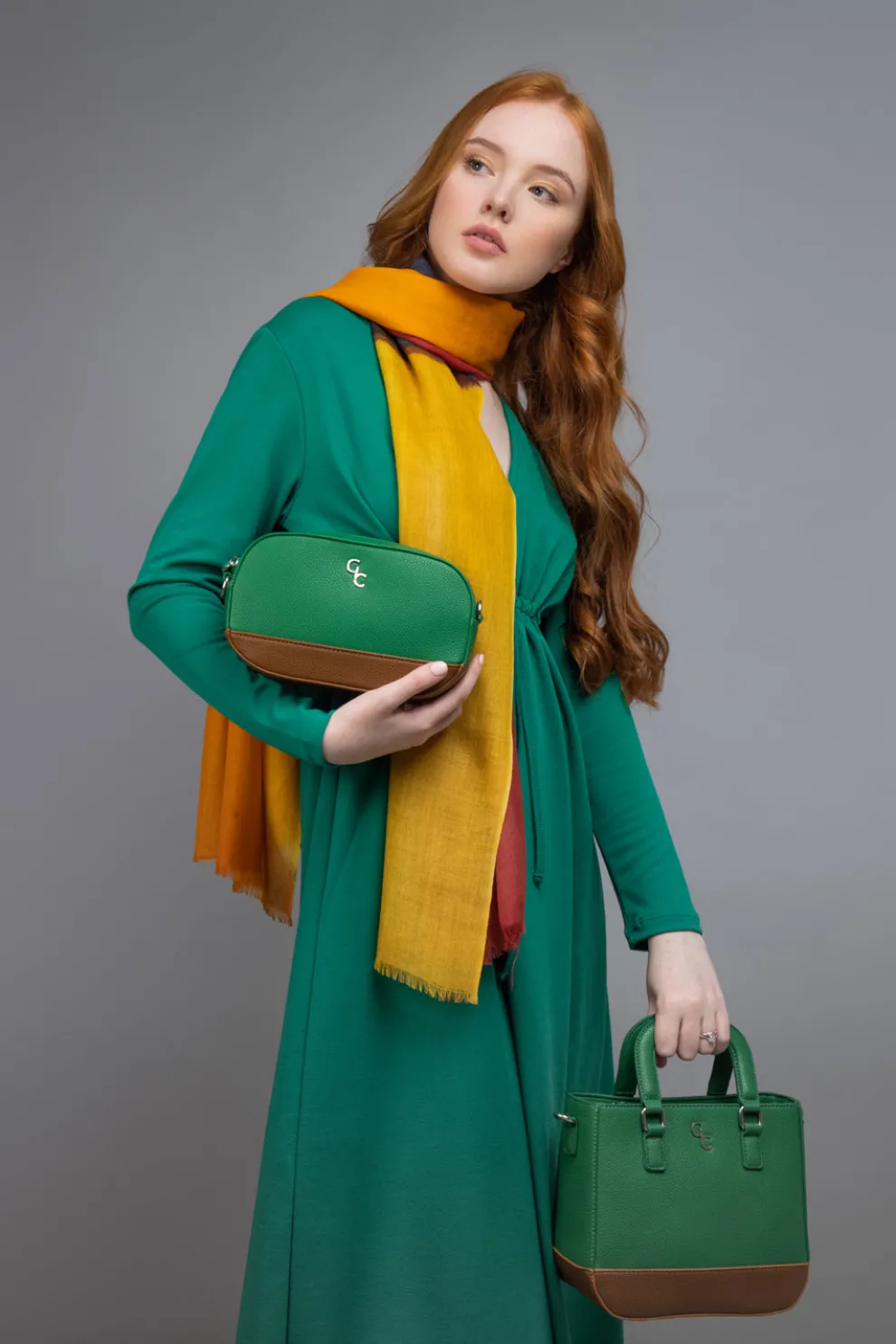 Our Galway Crystal two tone green & tan cross body bag is casual but classy and perfect for carrying all of life’s little essentials. The long adjustable leather strap means this bag can be worn cross body or on the shoulder, the strap can also be removed completely to be used as a clutch. This stylish handbag will take you effortlessly from day to night!